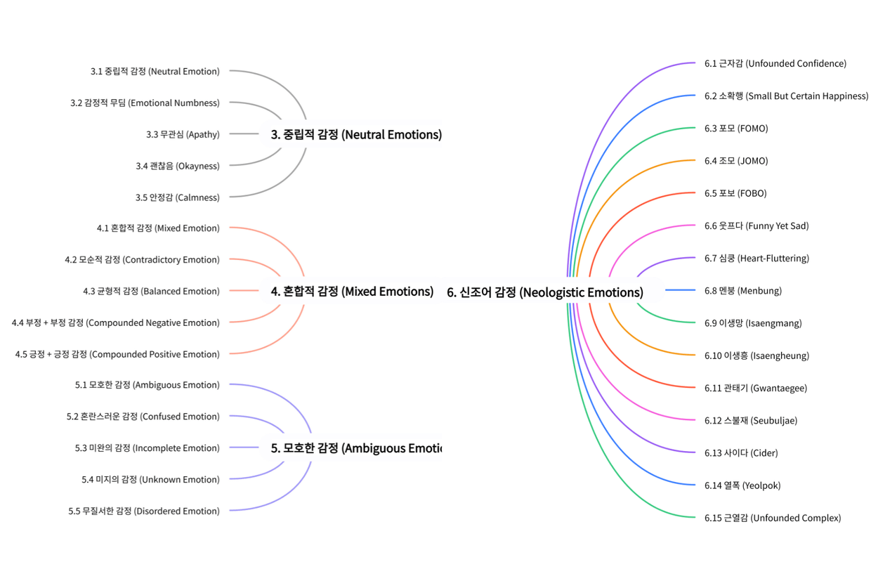 5.1 모호한 감정 (Ambiguous Emotion) / 5.2 혼란스러운 감정 (Confused Emotion) / 5.3 미완의 감정 (Incomplete Emotion) / 5.4 미지의 감정 (Unknown Emotion) / 5.5 무질서한 감정 (Disordered Emotion)