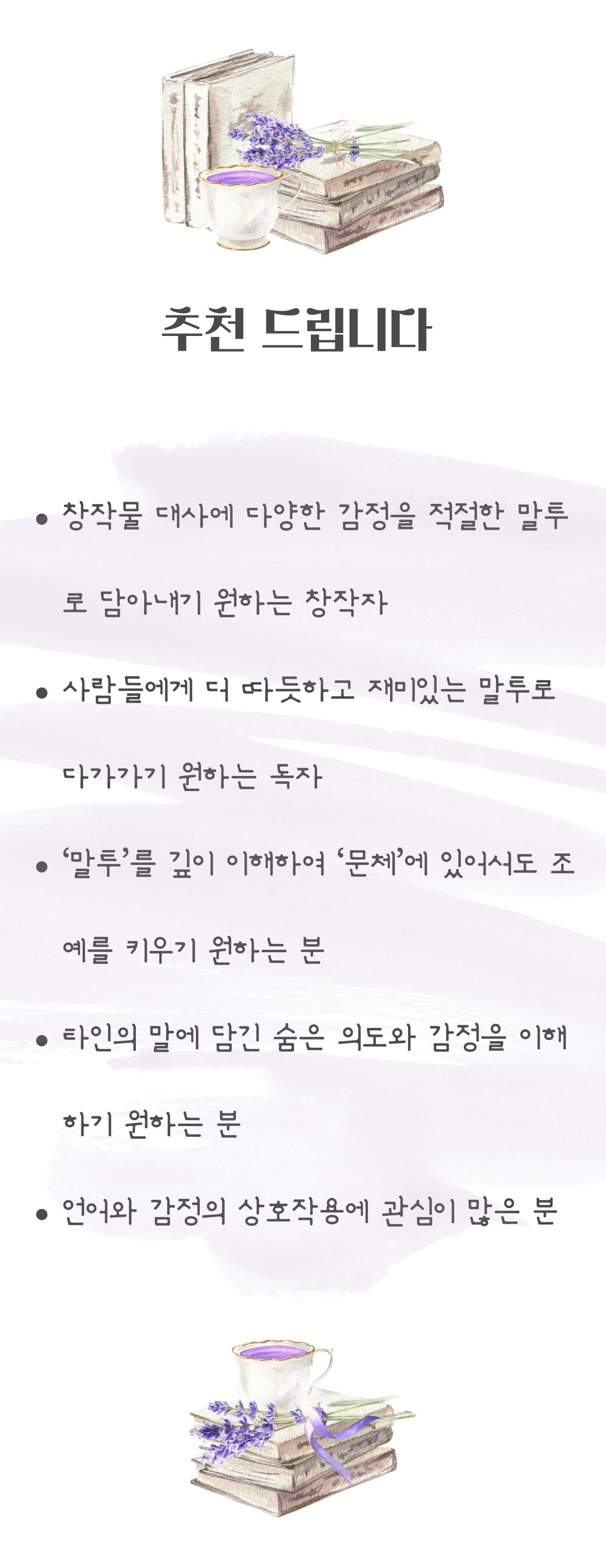 같은 ‘말’을 해도 ‘투’가 다르면 전혀 다른 의미를 전달하지요.