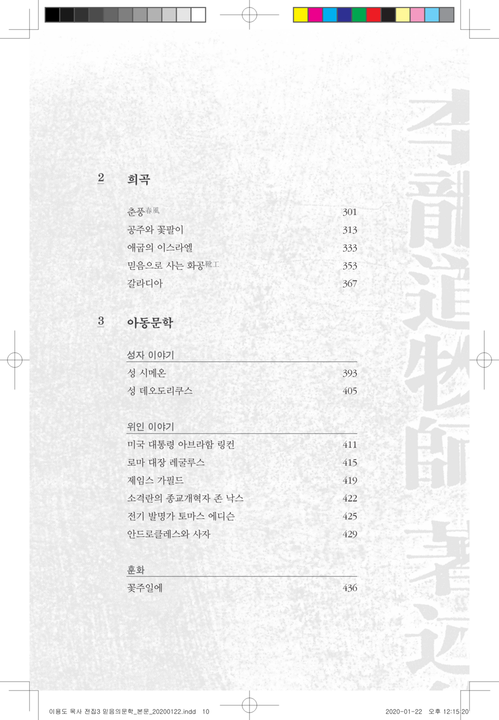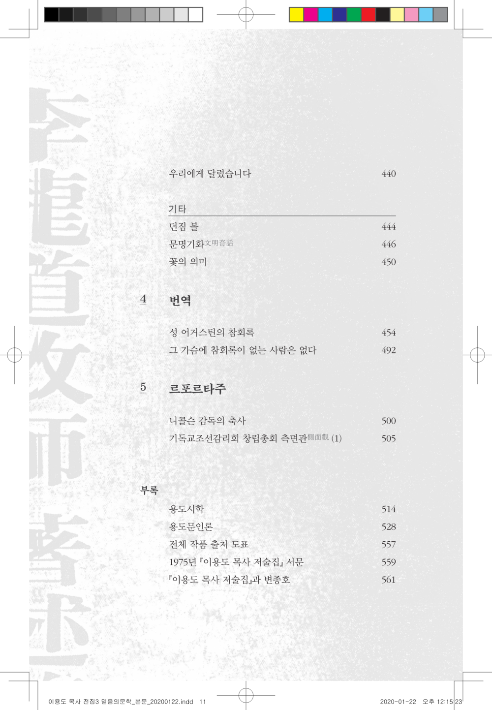 *이 외에도 아동문학, 번역문학, 르포르타주 등이 있습니다. 목차(일부)를 열거하면 아래와 같습니다.
