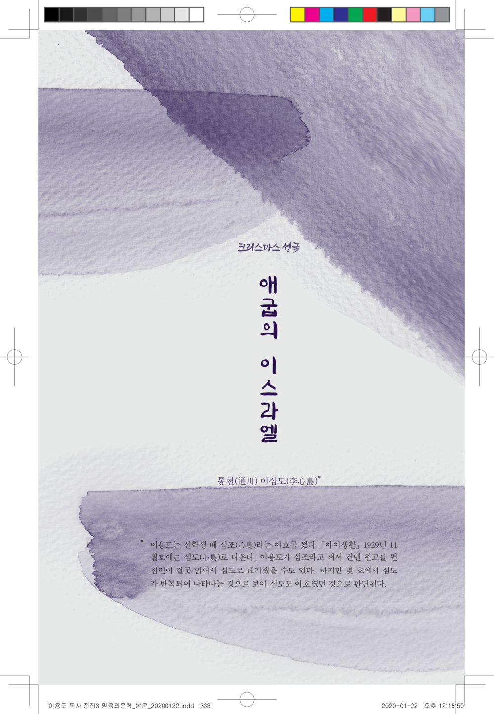 구약 시편의 기록자처럼 신앙심과 문학성은 서로 이질적이지 않은 하나로 존재할 수 있습니다. 이 책은 이용도란 창문으로 믿음의 문학을 감상하며 신앙과 예술의 화목을 중재하고자 합니다. 인자(人子)이신 예수 그리스도를 향한 신앙과 '인자(人子)들에 관한 이야기인 문학'의 다정한 모임으로 초청하는 바입니다.