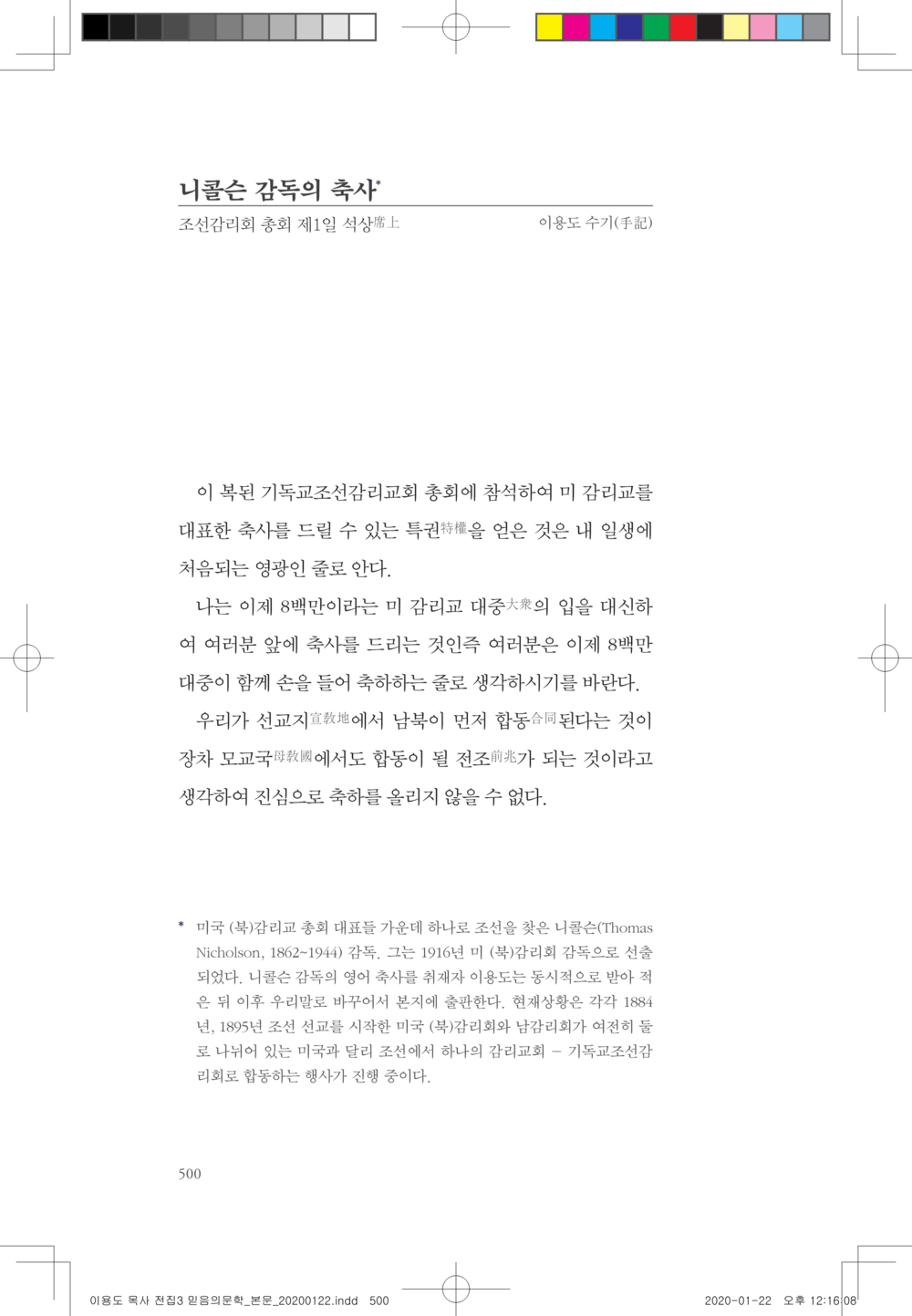 2. “믿음의 문학”을 읽으실 때 쓰시라고 이용도 목사 어록이 담긴 유광 코팅 책갈피.