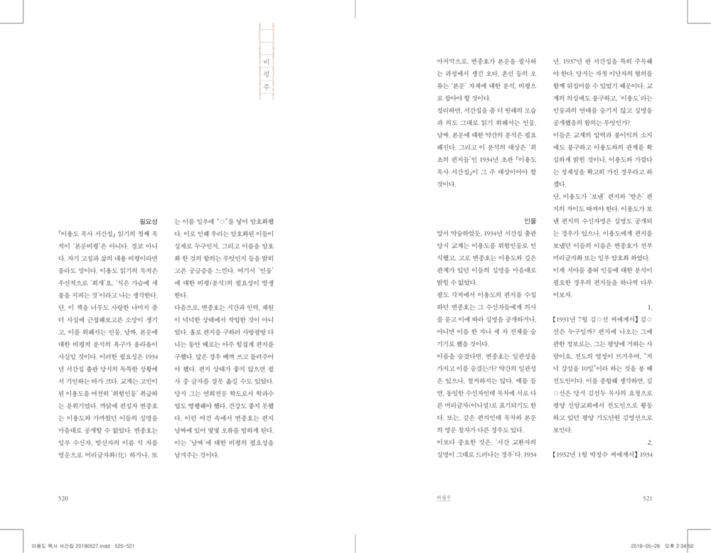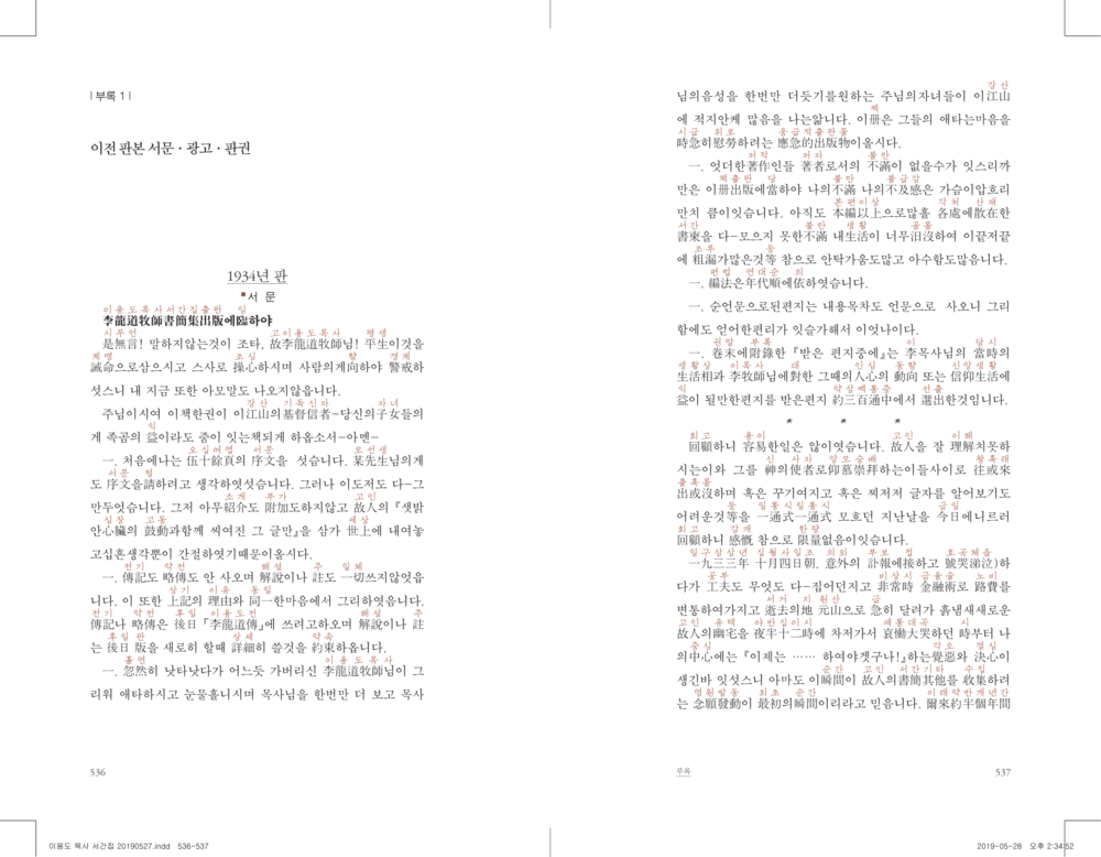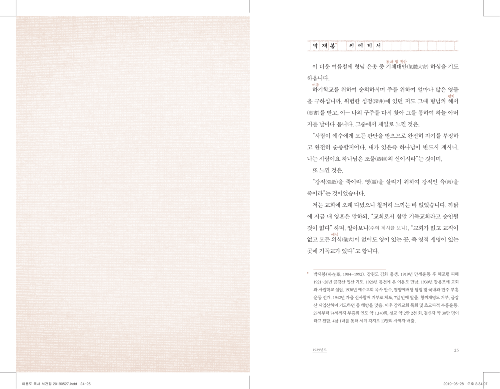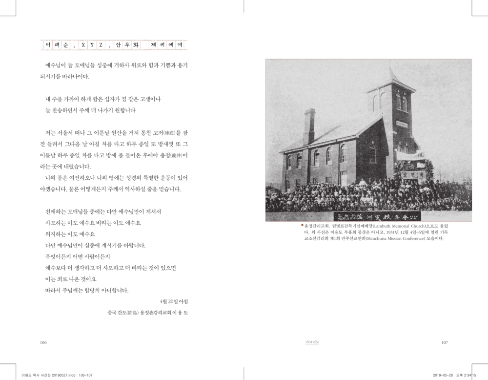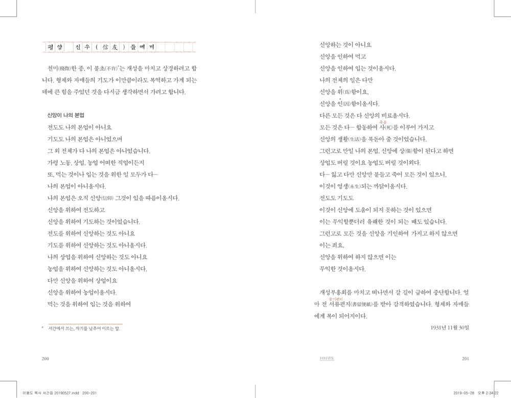 1934년 변종호가 『이용도 목사 서간집』을 세상에 처음 내놓은 이래로 1937년, 1953년, 1957년, 1969년, 1982년, 1986년, 1993년, 2004년 서간집은 계속하여 발행되었다. 일제강점기에 발행된 종교서적이 이후 꾸준히 읽혀왔다는 점만으로도 본서의 가치는 적잖이 증명될 것이다. 이번에 다시금 새롭게 빛을 보는 2019년 판은 이전의 성과 위에 한 층 더 쌓아 올려 전보다 더욱 풍부한 내용을 담았다. 이용도 목사가 보낸 편지 118통과 받은 편지 35통으로 구성되었다. 편지마다 배어있는 선조들의 생활영성에 접할 때, 오늘 우리의 생활에도 신앙의 새로운 장이 펼쳐질 것이다.